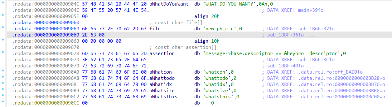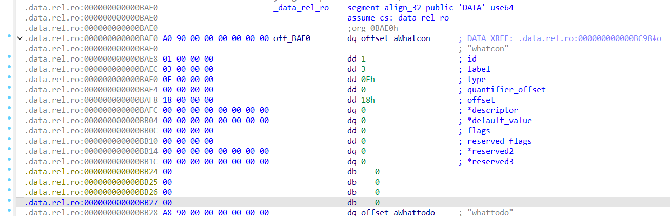 然后通过交叉引用找到message字段的结构体,一般在.data.rel.ro段